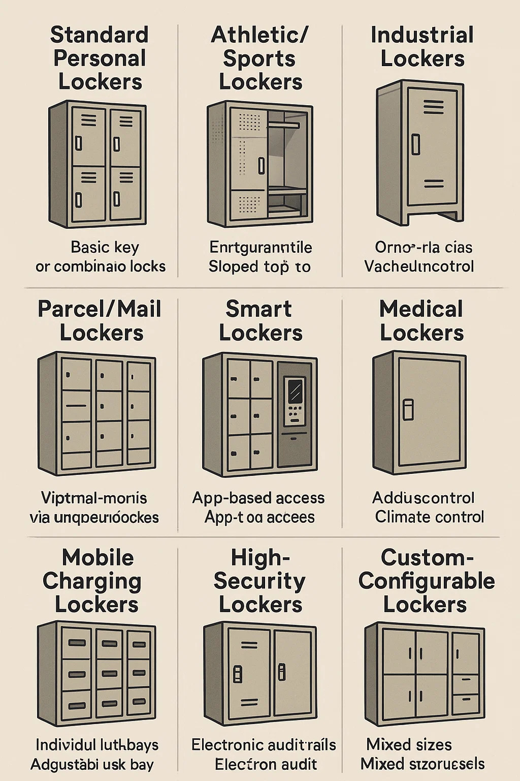 A szekrényeket a tervezés, a funkció és a telepítési kontextus alapján kategorizálják. Az alábbiakban bemutatjuk a közös típusok bontását: